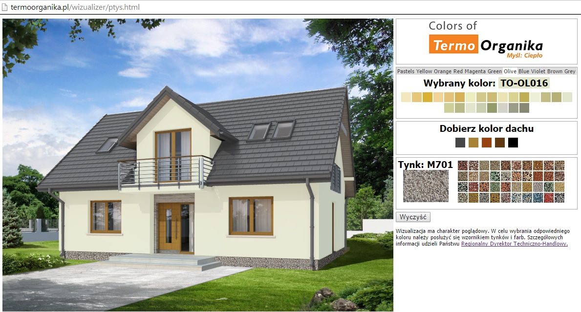 Wybór koloru na elewację często staje się trudnym zadaniem szczególnie, gdy trzeba pogodzić gusta wszystkich domowników i dopasować styl wykończenia do sąsiadujących domów. Dodatkowo należy odpowiednio „zgrać” kolor elewacji z kolorem dachu. Warto pamiętać, że elewacja to nie tylko kolor ściany, ale także barwa przyziemia (cokołu), czy też elementy dekoracyjne, jak np. bonie. Na stronie internetowej Termo Organiki dostępny jest bezpłatny wizualizer kolorów. To funkcjonalne narzędzie internetowe przeznaczone dla klientów indywidualnych, architektów i projektantów zapewnia przygotowanie symulacji kolorystycznej elewacji budynku. Prosty w obsłudze program gwarantuje swobodną zabawę kolorami tynków i farb, która ułatwi wybór optymalnego, kolorystycznego rozwiązania podczas planowania termomodernizacji.